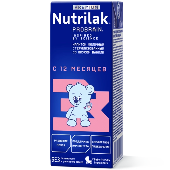 Бір жастан асқан балаларды тамақтандыруға арналған, ваниль дәмі бар, пайдалануға дайын балалардың сүт сусыны.