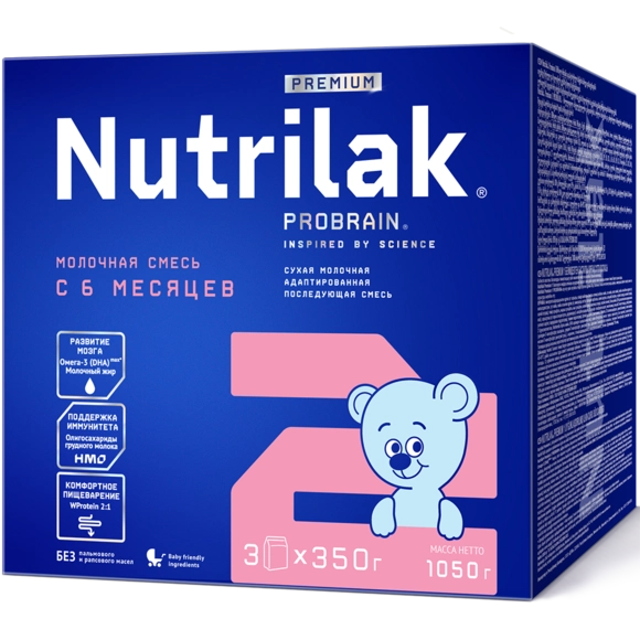 Су, минералсыздандырылған құрғақ сүт сарысуы, өсімдік майлары (жоғары олеинді күнбағыс майы, соя майы, кокос майы), сүт майы, майы алынбаған құрғақ сүт, мальтодекстрин, лактоза, минералды заттар (кальций карбонаты, калий цитраты, кальций фосфаты, натрий хлориді, магний хлориді, калий хлориді, темір сульфаты, мырыш сульфаты, мыс сульфаты, калий йодиді, натрий селениті), балық майы (DHA докозагексаен қышқылының көзі), дәрумендер (L-аскорбин қышқылы, DL-альфа-токоферола ацетат, никотинамид, кальций D-пантотенады, рибофлавин, ретинол ацетат, пиридоксин гидрохлориді, тиамин гидрохлориді, фолий қышқылы, филлохинон, D-биотин, D3 холекальциферол, цианкобаламин), эмульгатор (соя лецитині), таурин, холин битартраты, инозит, нуклеотидтер, L-карнитин, тотықсыздандырғыш (L-аскорбилпальмитат).