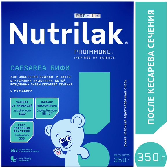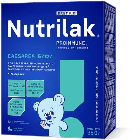 Кесар тілігі арқылы туған балалардың ішегін лакто- және бифидобактерияларға толтыратын балаларға арналған құрғақ сүт қоспасы. Дисбиоз (микробтардың теңгерімсіздігі) кесар тілігі арқылы туғанда, антибиотиктерді қолданғаннан кейін, ішек инфекцияларымен ауырғаннан кейін, қоспаларды дұрыс таңдамағанда немесе жиі ауыстырғанда пайда болады. Иммунитет ішек микробиотасының жағдайына байланысты. Балада өмірінің алғашқы жылында иммундық жүйенің жетілуіне септігін тигізетін лакто- және бифидобактериялар басым болуы тиіс.