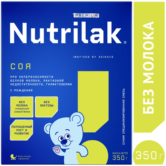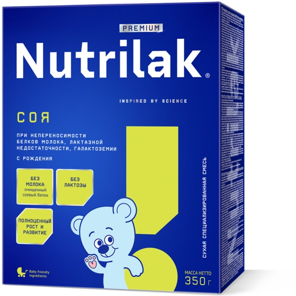 глюкоза шәрбаты, өсімдік майлары (пальма майы, кокос майы, соя майы, жүгері майы), соя ақуызының изоляты, минералды заттар (натрий хлориді, магний хлориді, калий цитраты, калий фосфаты, натрий цитраты, мырыш сульфаты, темір сульфаты, мыс сульфаты, калий йодиді, натрий селениті), балық майы (DHA докозагексаен қышқылының көзі), Mortierella Alpina майы (ARA арахидон қышқылының көзі), дәрумендер (L-аскорбин қышқылы, DL-альфа-токоферол ацетаты, никотинамид, кальций D-пантотенады, пиридоксин гидрохлориді, ретинол ацетаты, рибофлавин, тиамин гидрохлориді, фолий қышқылы, филлохинон, D-биотин, D3 холекальциферол, цианкобаламин), холин битартраты, L-метионин, эмульгатор (соя лецитині), таурин, инозит, L-карнитин, тотықсыздандырғыш (L-аскорбилпальмитат).